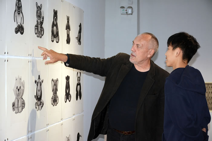 藝術(shù)家伊恩·霍華德(中)與蘭錦斌(右)為觀眾留言