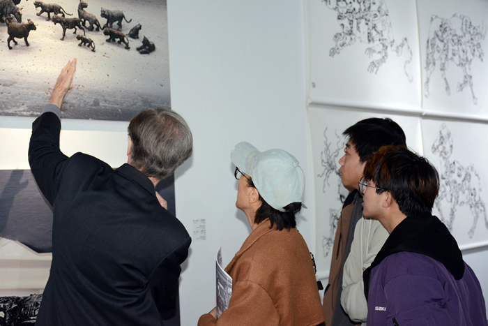 2025年11月1日,《好奇的動物》在北京798國際藝術(shù)交流中心拉開帷幕。來自中澳兩國不同年齡段的藝術(shù)家伊恩·霍華德(Ian Howard)、邁克爾·肯普森(Michael Kempson)、蘭錦斌、李文旻和邢俊勤,分別以“好奇的動物”“民族主義的動物”“合成的動物”“服務(wù)的動物”和“機械的動物”五個板塊,通過木刻、蝕刻版畫、布面油畫、紙本水彩、水墨、多媒體和數(shù)碼打印等多種藝術(shù)創(chuàng)作形式,以不同形態(tài)化的“動物”為主體,激發(fā)觀者對人與動物、人與人之間關(guān)系的抽象認知,以此反射當(dāng)代語境下藝術(shù)家們對人類生存與行為的深思。