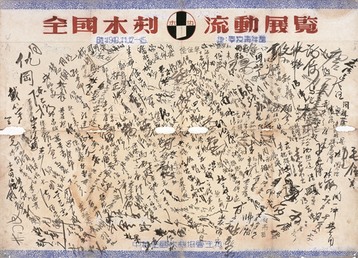 《中華全國(guó)木刻協(xié)會(huì)展覽會(huì)廣告及簽名》,1948,華茂藝術(shù)教育博物館藏