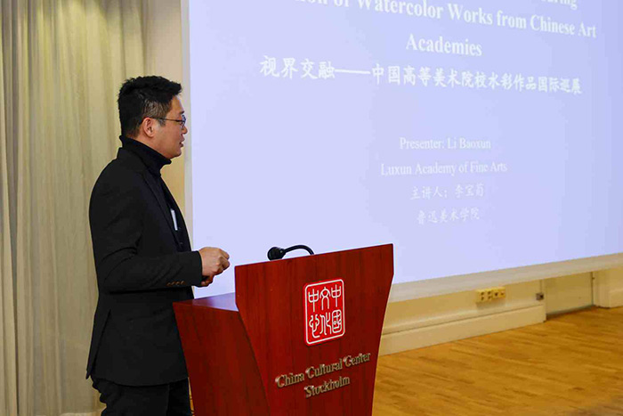 水彩畫在西方藝術的發(fā)展過程中,具有悠久的歷史文化,中國水彩畫的發(fā)展,最早可見于19世紀末20世紀初西方傳教士的作品,經(jīng)過近百年的發(fā)展,已取得顯著的成就:從20世紀初期的轉型與融合、20世紀中期的挑戰(zhàn)與突破,到21世紀以來的重塑與自覺,形成了當下水彩創(chuàng)作的融合與超越?!耙暯缃蝗凇毖舱乖诶现星嗳挠行騻鞒兄校尸F(xiàn)出中國水彩畫的百年發(fā)展史的當代創(chuàng)作新面貌。本次瑞典站展覽還增加了一個專題講座和觀眾體檢互動活動,因此展覽不僅是一次視覺的盛宴,更是一次心靈的相遇,中瑞文化的互鑒。