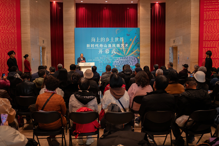 11月26日上午,由浙江省文學(xué)藝術(shù)界聯(lián)合會(huì)、中共舟山市委宣傳部聯(lián)合主辦的“海上的鄉(xiāng)土世界——新時(shí)代舟山漁民畫藝術(shù)作品展”在北京中國美術(shù)館開幕。