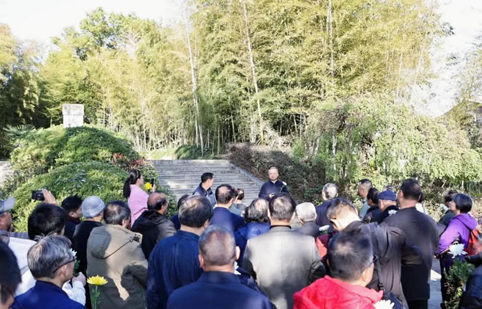 與會(huì)詩(shī)人、藝術(shù)家及各界嘉賓向趙孟頫管道升陵墓獻(xiàn)花致敬(主辦方供圖)