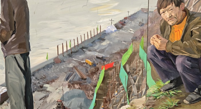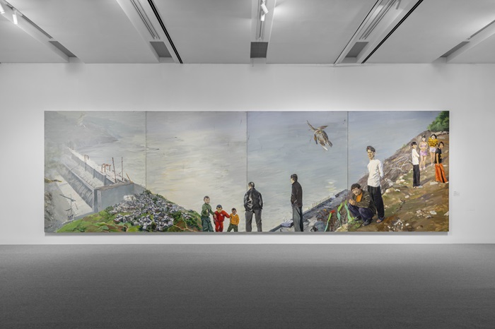 《三峽新移民》,亞麻布油畫,2004,300×1000cm ?泰康收藏“劉小東:河?xùn)|,河西”展覽現(xiàn)場,泰康美術(shù)館,2025