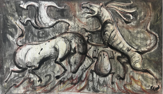 陳文清 搏擊圖 39x68cm 彩墨 2025