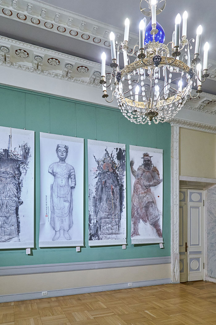 展覽作品呈現(xiàn)了從“考古現(xiàn)場”到“課堂教學”再到“創(chuàng)作空間”的完整鏈條和“與古為新”的傳習路徑。作品既體現(xiàn)了東方哲學“天人合一”“以形寫神”“繪塑一體”的美學精神,又融入了現(xiàn)代繪畫表達的創(chuàng)新語言,這種在深刻理解基礎(chǔ)上的再生與升華,使經(jīng)典不再僅僅是博物館的標本,而成為活的、可延續(xù)傳承的藝術(shù)基因,使傳統(tǒng)在當代語境中煥發(fā)新的敘事能量。中國美術(shù)學院的探索,試圖證明扎根本土傳統(tǒng)與擁抱世界并非悖論,而是相輔相成的雙向路徑。展覽旨在以藝術(shù)為紐帶,深化中俄人文交流機制,推動中俄文化藝術(shù)與教育領(lǐng)域的深度交流合作和學術(shù)資源共享。